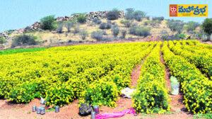 ఫిబ్రవరి 28 మహాప్రభ, కూడేరు(అనంతపురం): కూడేరు మండలంలోని రామచంద్రపురం గ్రామంలో రైతు బంగి వెంకటప్ప ఎకరం పొలంలో బంతిపూలు సాగు చేశారు. పసుపు వర్ణంతో పూలు విరబూసి కన్నుల విందు చేస్తున్నాయి. సాగు కోసం దాదాపు రూ.40వేలు పెట్టుబడి పెట్టాడు. అయితే కిలో రూ.6 ధర కూడా పలకడం లేదని రైతు ఆవేదన వ్యక్తం చేశాడు. కూలి కూడా రాకపోవడంతో పూలు కోయకుండా అలాగే వదిలేశాడు. దీంతో తోటంతా పసుపుపచ్చగా కనిపిస్తోంది.